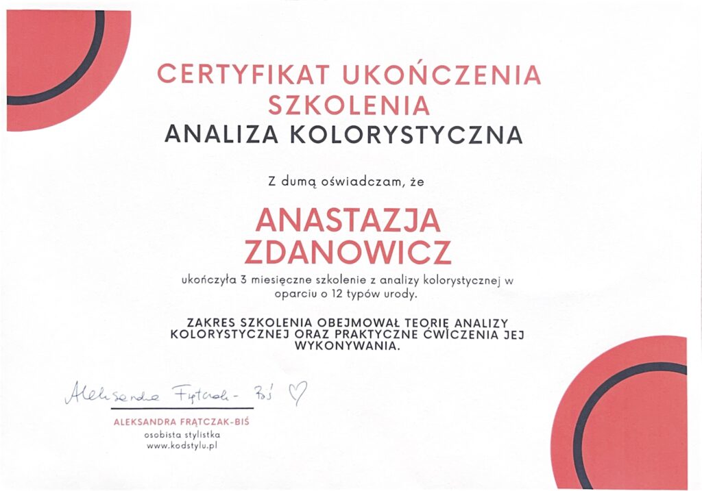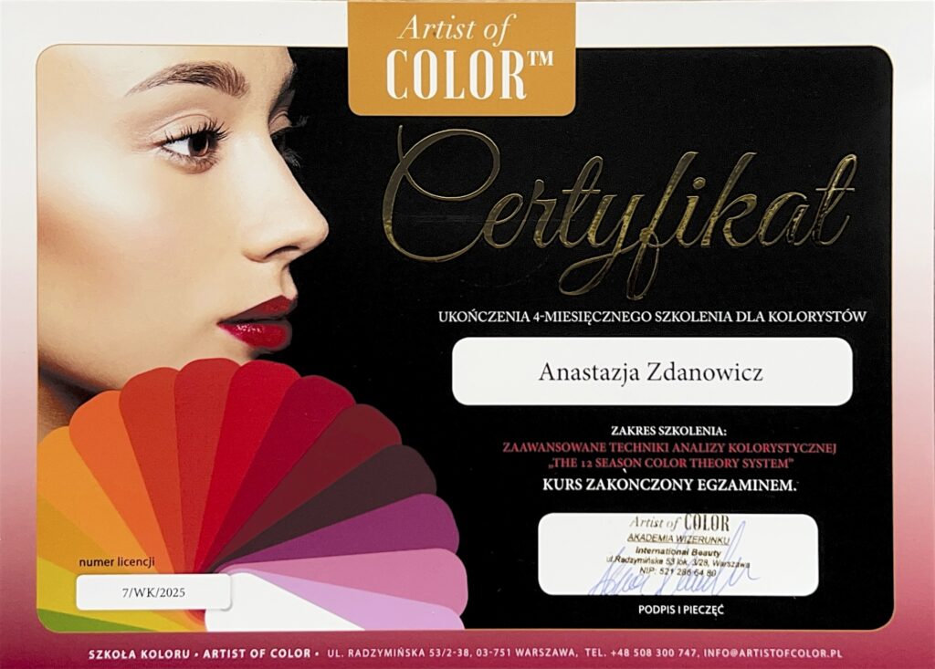 To pytanie zaprowadziło mnie na ścieżkę analizy kolorystycznej, którą zgłębiałam poprzez kursy i szkolenia, zdobywając certyfikaty potwierdzające moją wiedzę. Dziś wiem, jak wielką różnicę może zrobić odpowiedni dobór kolorów i stylizacji — podkreśla naturalną urodę, sprawia, że czujemy się pewniej i bardziej autentycznie.